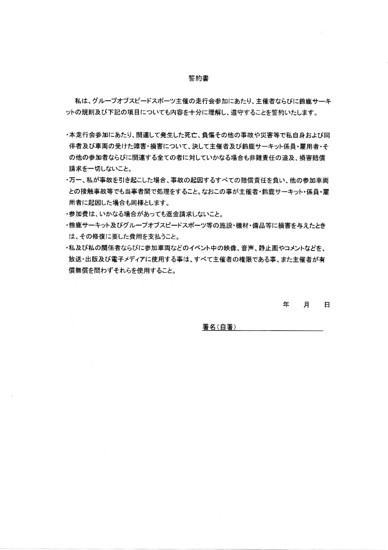 エントリー表と誓約書は当日配布致しますので当日記入願います。