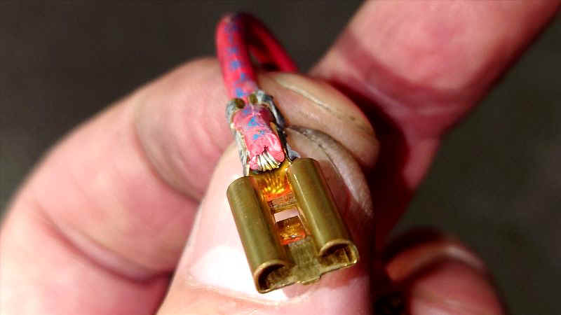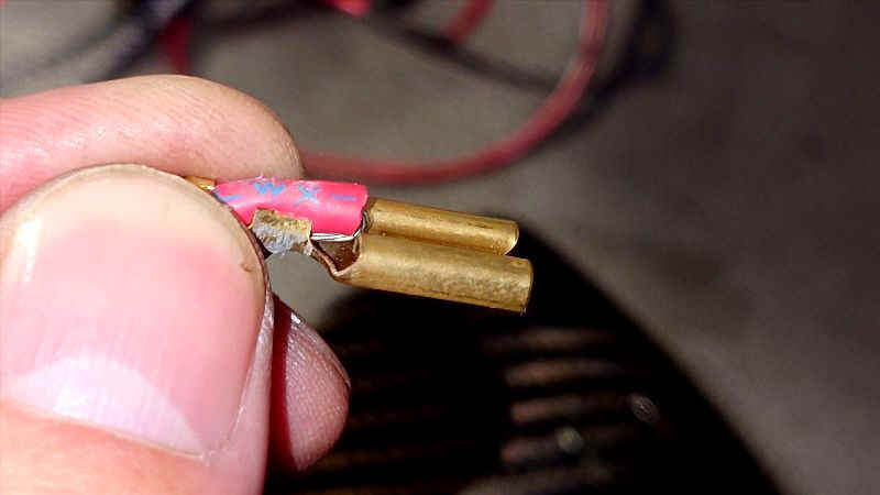 ここに使える平ギボシはなかなか手に入りません。 ●収縮チューブ使ってキチンとしてそうですがカシメが甘くてというか繋がってませんでした。リンクを新品に交換して解決です。