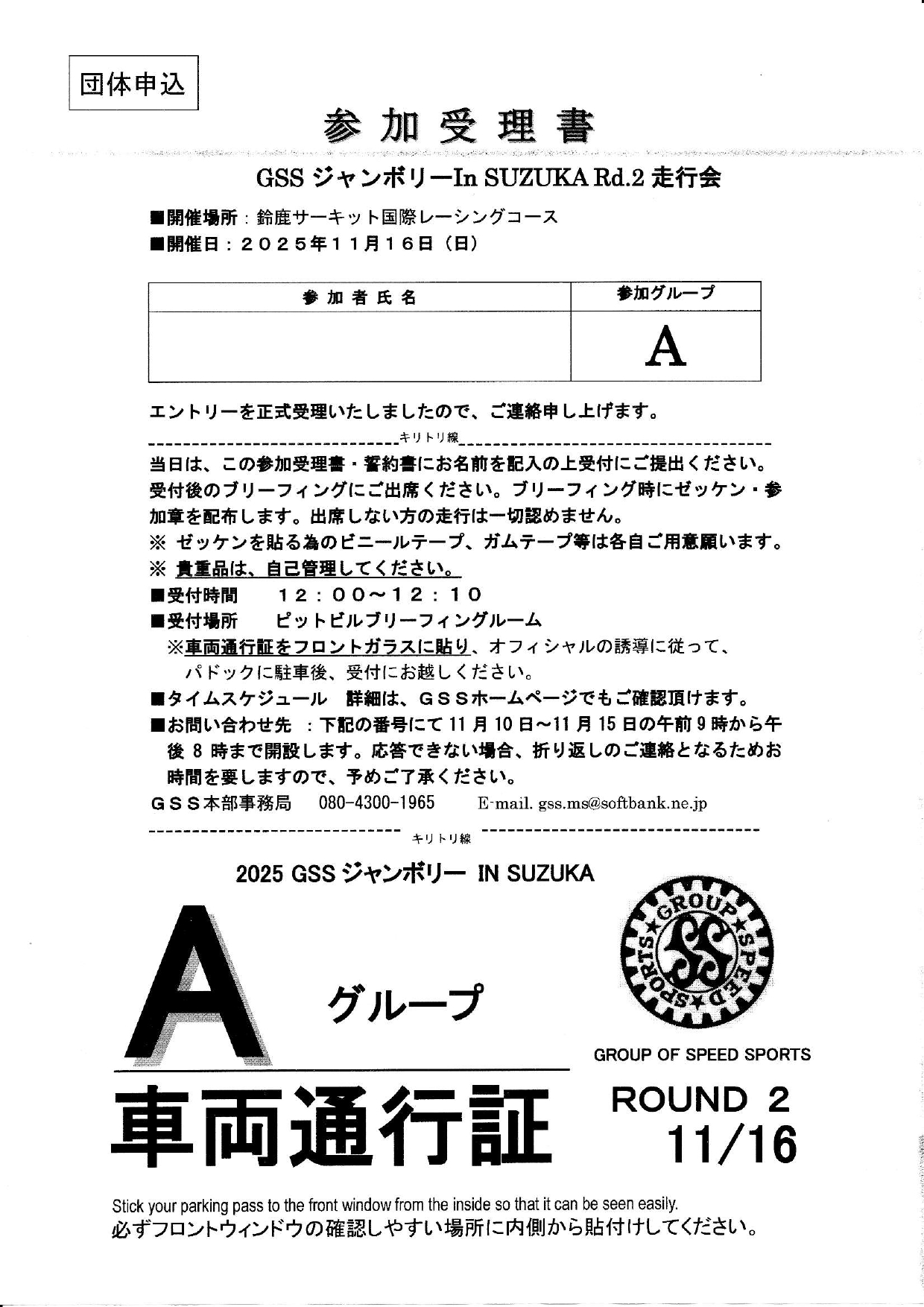 エントリー表と誓約書は当日配布致しますので当日記入願います。